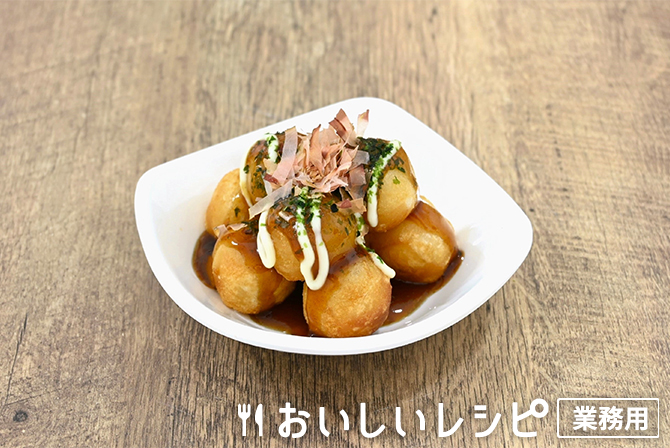 いももちをたこ焼きに見立てたメニューです。表面はカリッと、中はもっちりとしたいももちはやみつきになります。